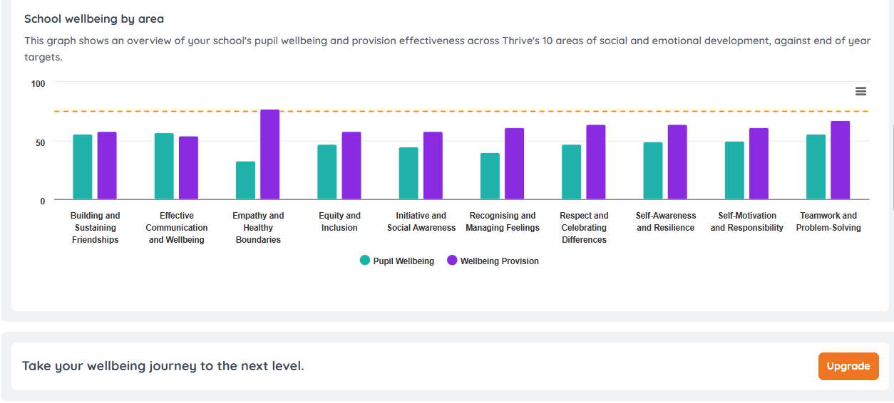 Review results for all ten areas of social and emotional development, with pupil wellbeing and provision side by side - helping you spot where pupils are thriving and where further support may be needed.