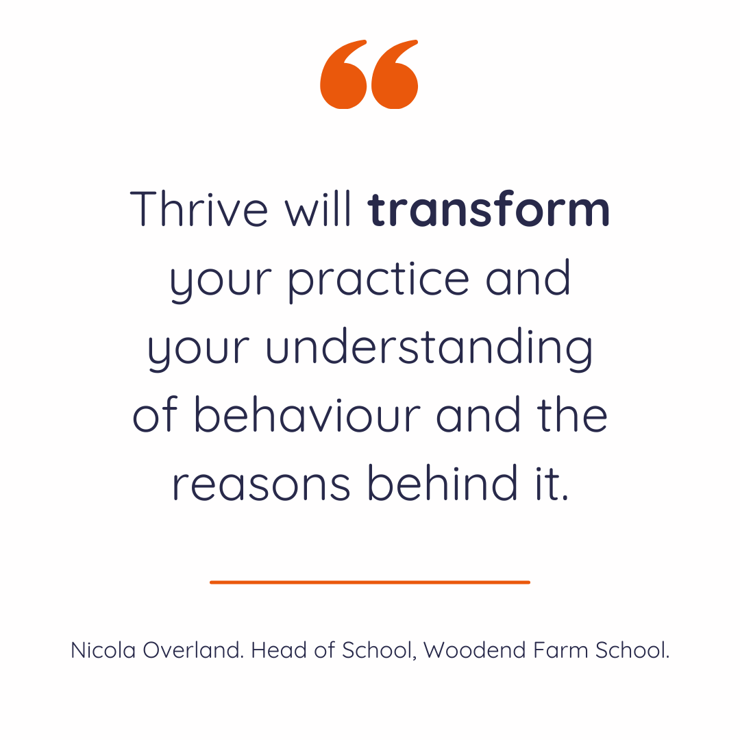 “Thrive will transform your practice and your understanding of behaviour and the reasons behind it. This will then change the way you approach academic learning”, she added.